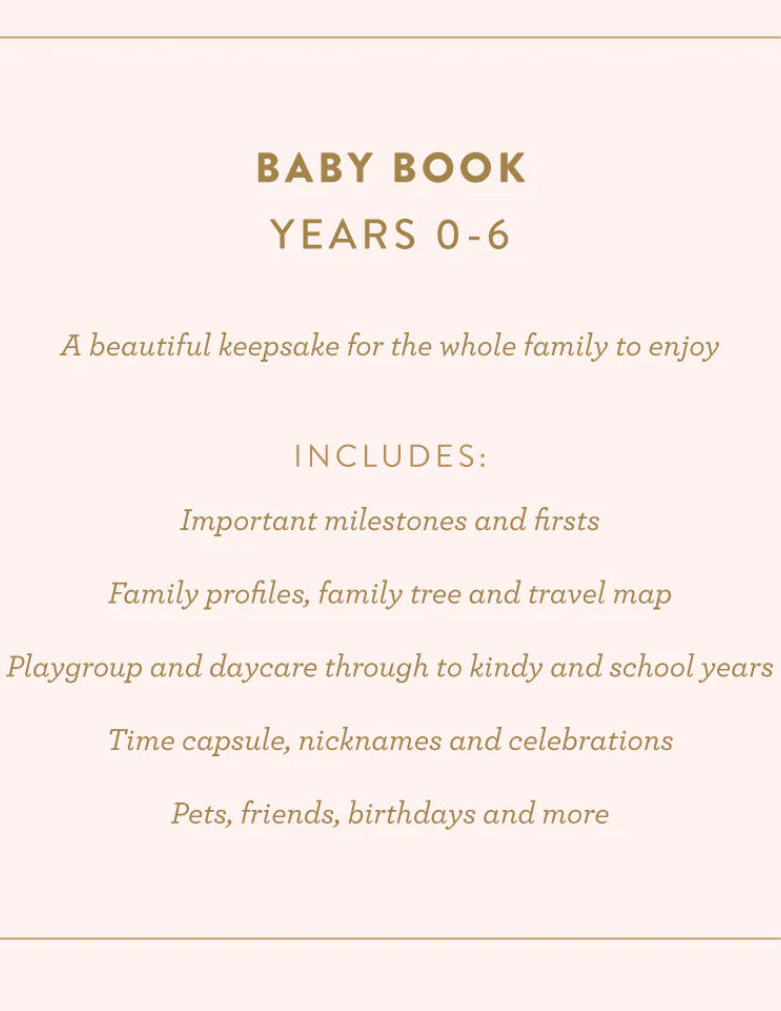 A beautiful keepsake for the whole family to enjoy in a blank ivory linen box with small Fox & Fallow logo on the base. Includes: important milestones and firsts, family profiles, family tree and travel map, playgroup and daycare through to kindy and school years, time capsule, nicknames and celebrations, pets, friends, birthdays and more.