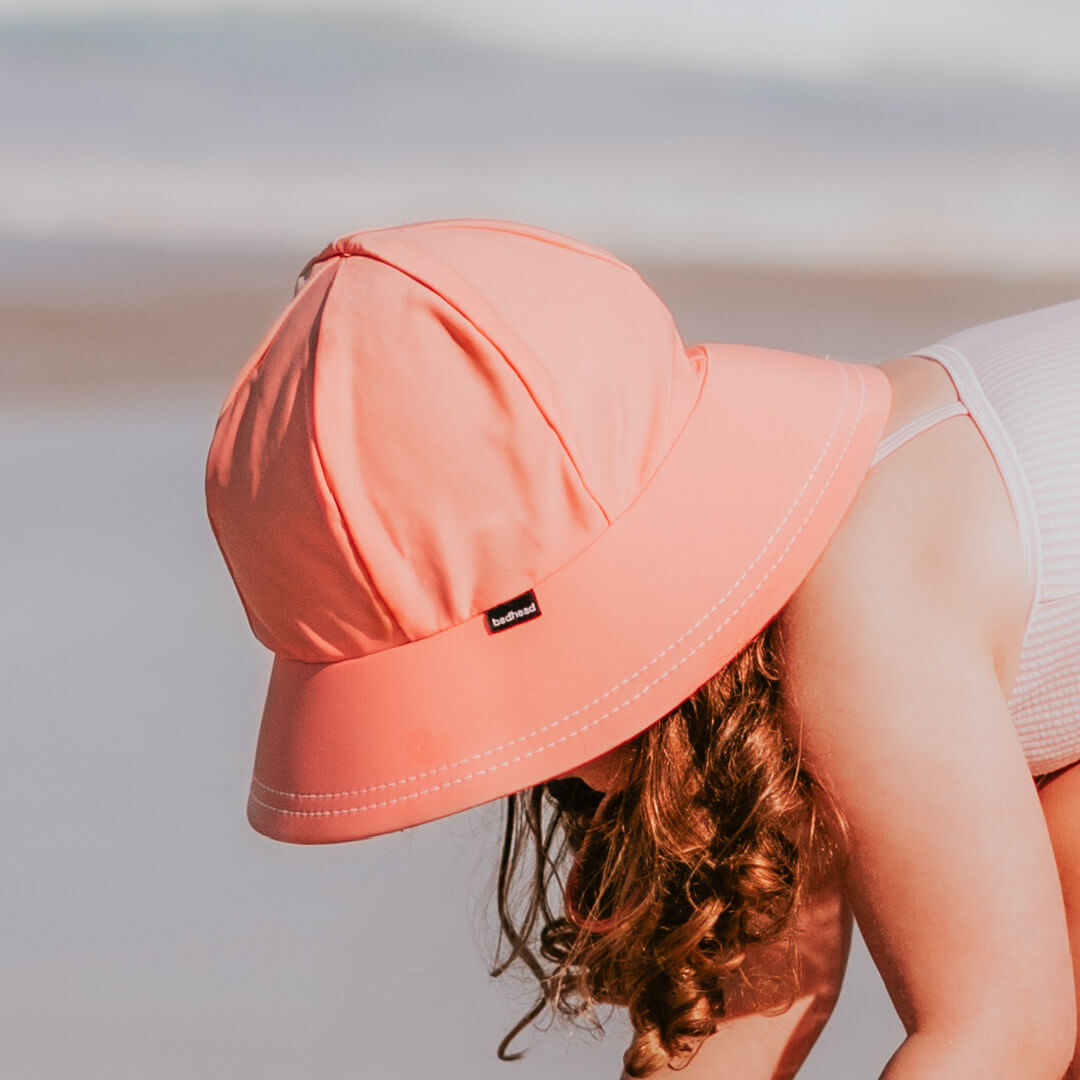 The Bedhead Ponytail Swim Bucket Hat is a UPF50+ kids sun hat with our unique 'anti-flop' brim that won't flop in front of children's eyes!