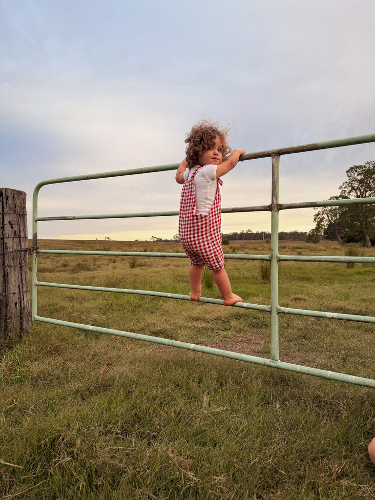 Handmade in Coffs Harbour, NSW, these overalls have been thoughtfully designed for growing children. Made with a gusset crutch, extra length in the legs so they can be rolled for prolonged wear, and adjustable tie shoulder straps.