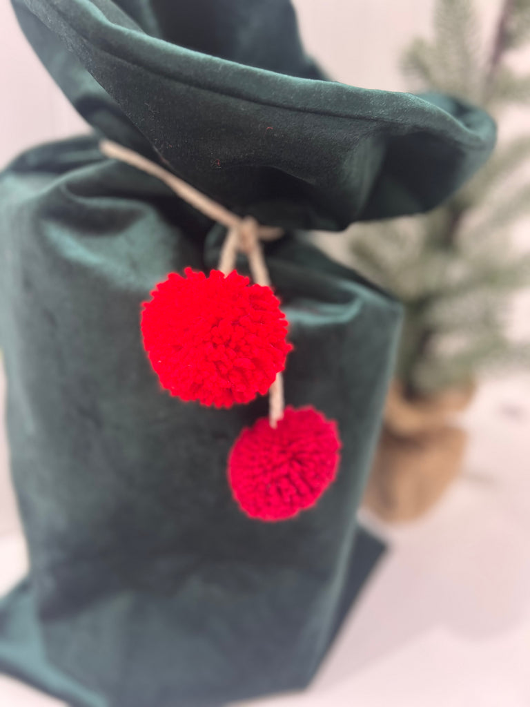 Santa Sack Luscious Velvet with Pom Poms - EMERALD GREEN