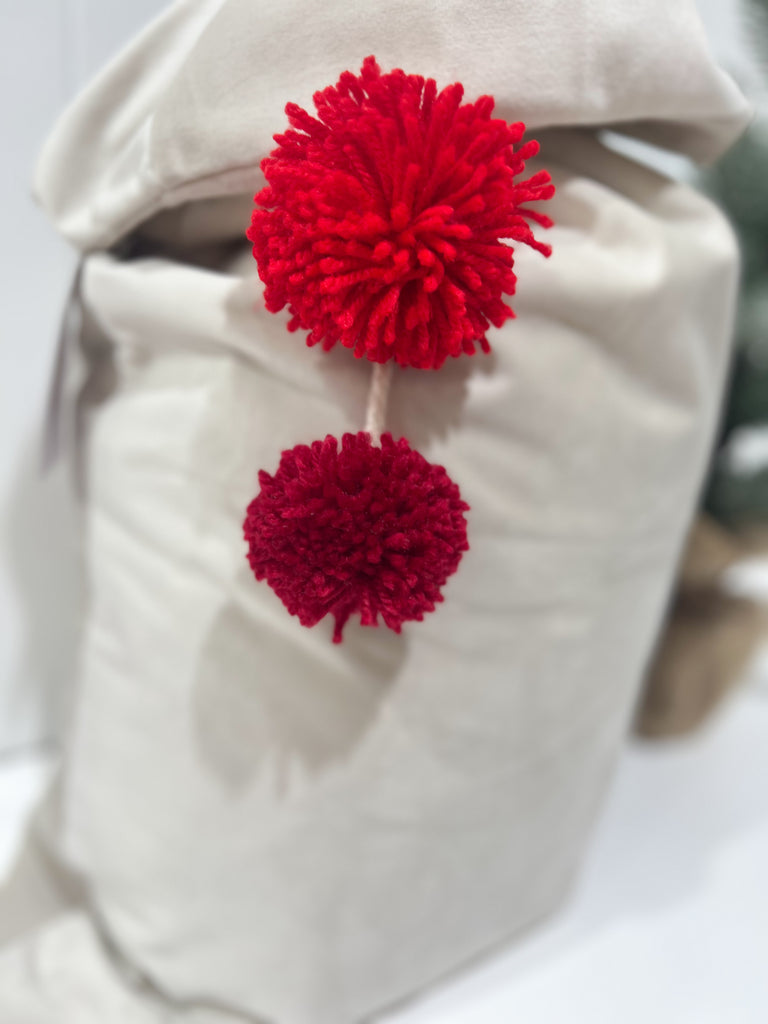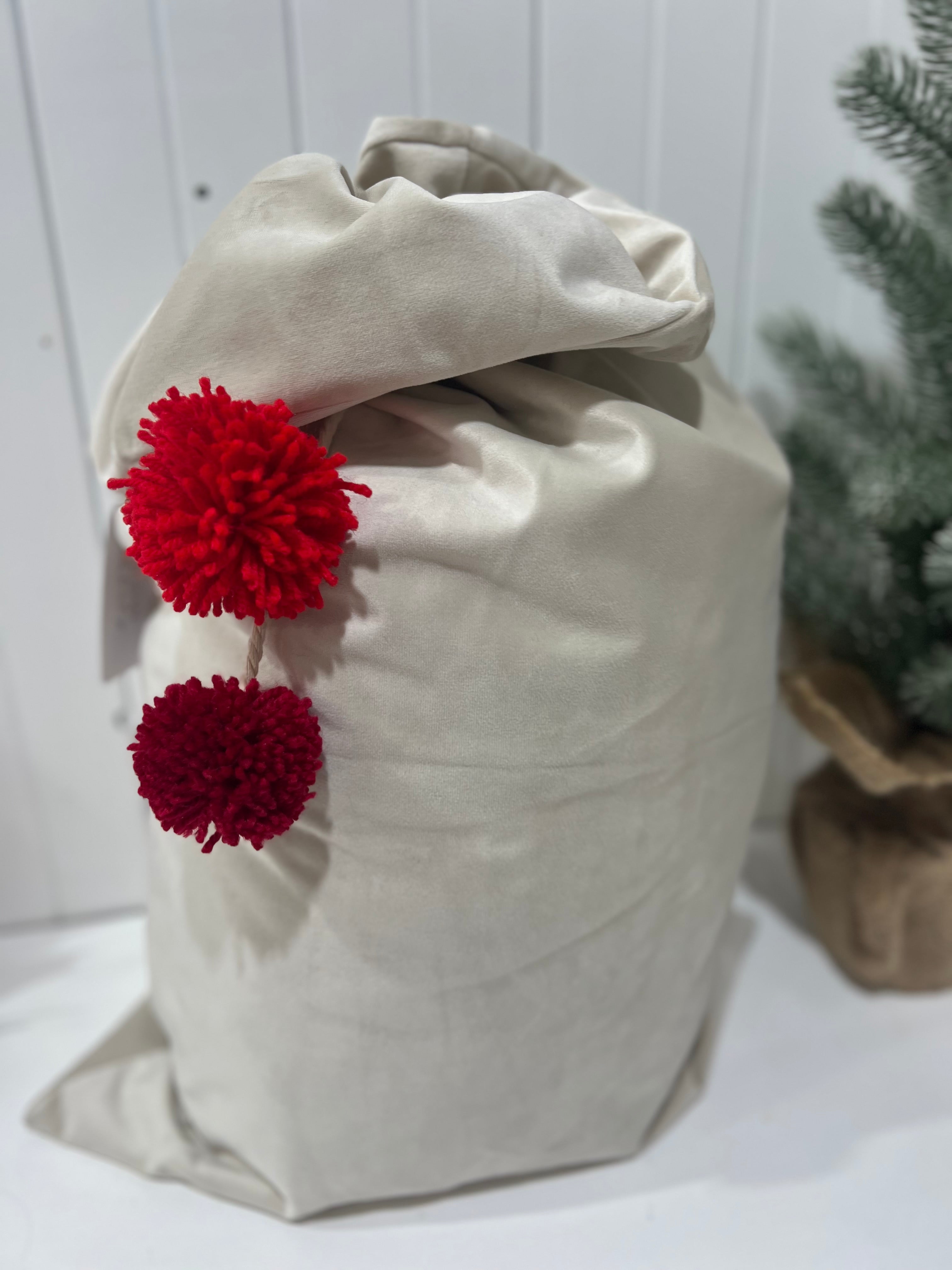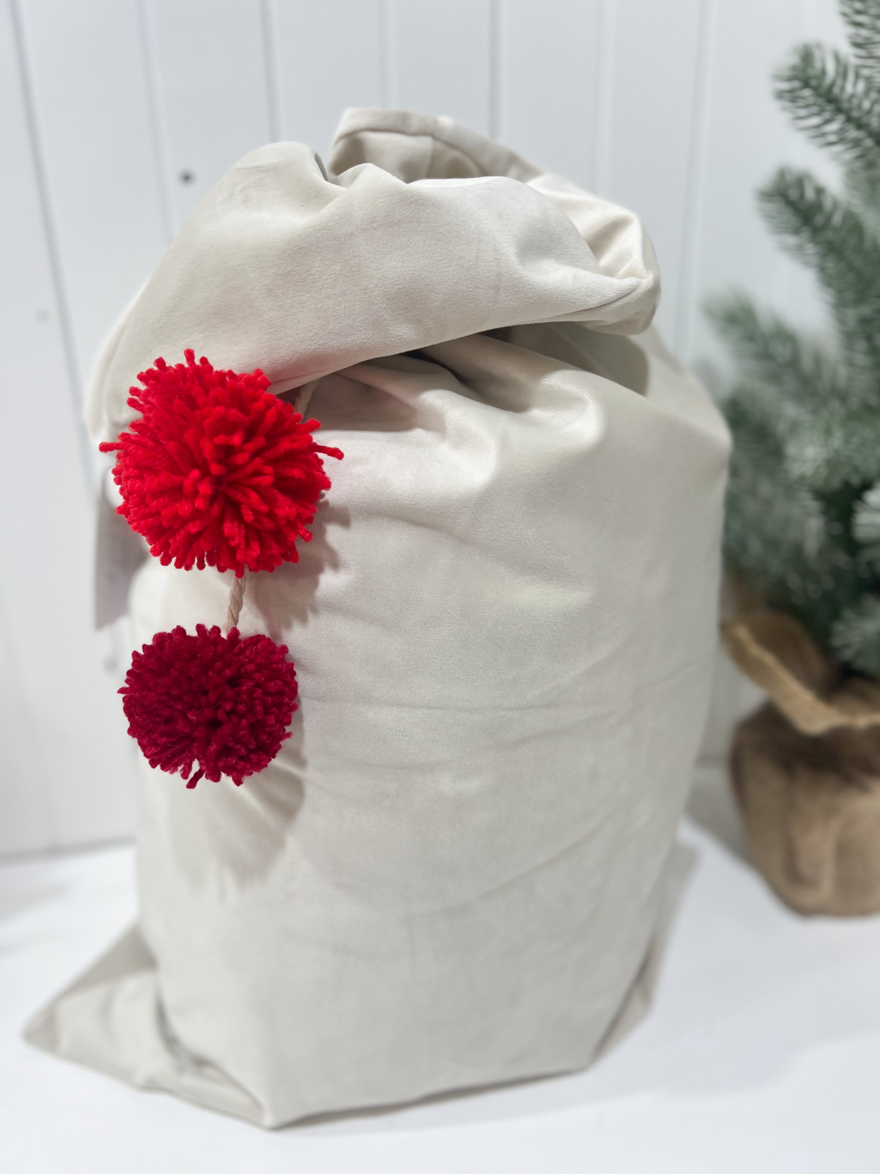 Santa Sack Luscious Velvet with Pom Poms - IVORY