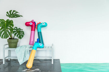 Hobby horse or water noodle: everything is possible with our new inflatable friends. Let your kid’s imagination run wild! Choose from our 3 designs: Dino, horse or giraffe.