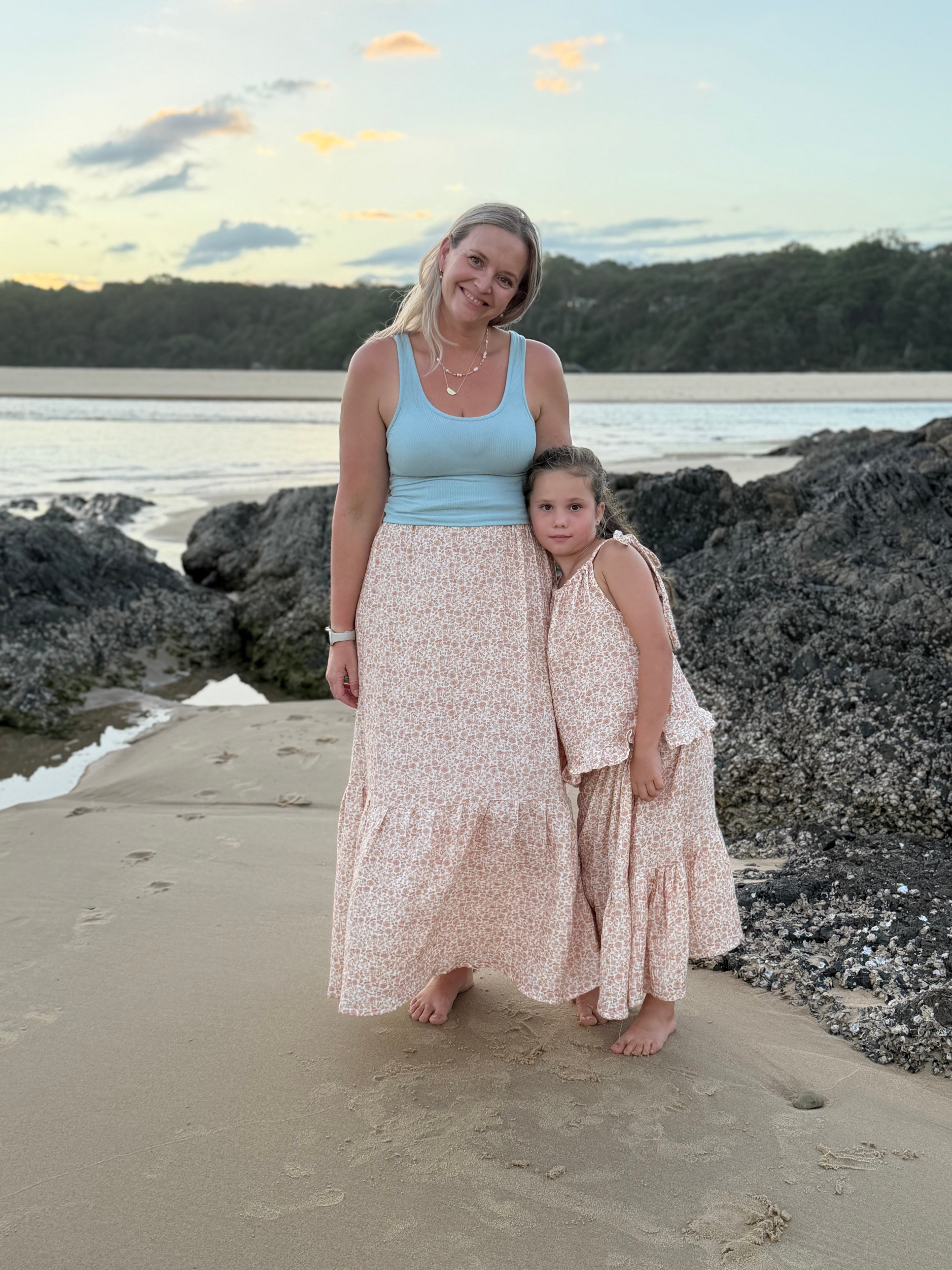 Designed to be worn mid waist and for the length to be mid calf, but sizing is versatile with our super soft elastic so size up/down for length as needed.