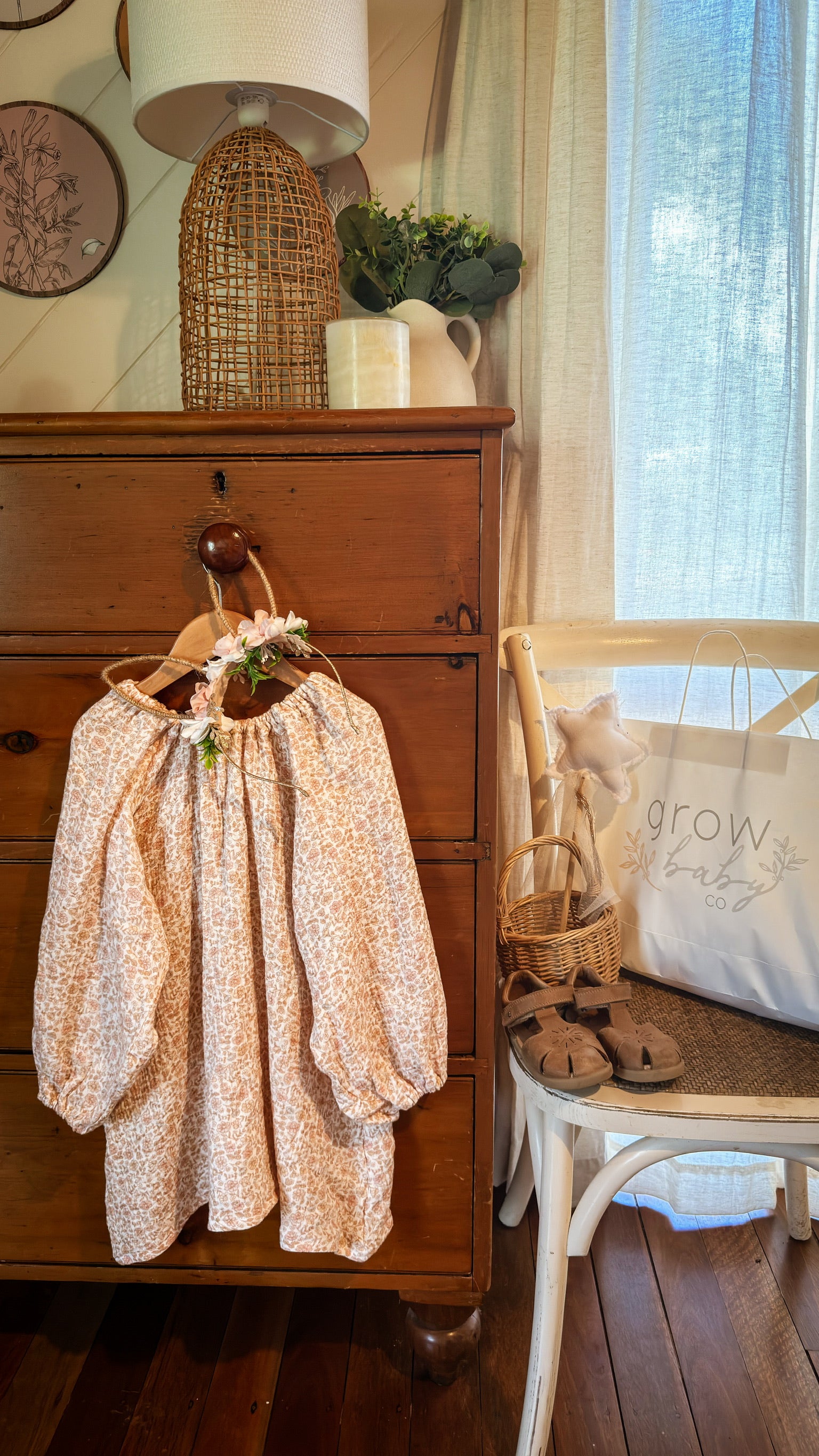 Handmade with care in Australia, the dress is crafted in small batches to ensure the highest quality. Made from a soft, lightweight Cotton Linen fabric, it feels comfortable against your child's skin, allowing them to move freely and enjoy themselves on any occasion.