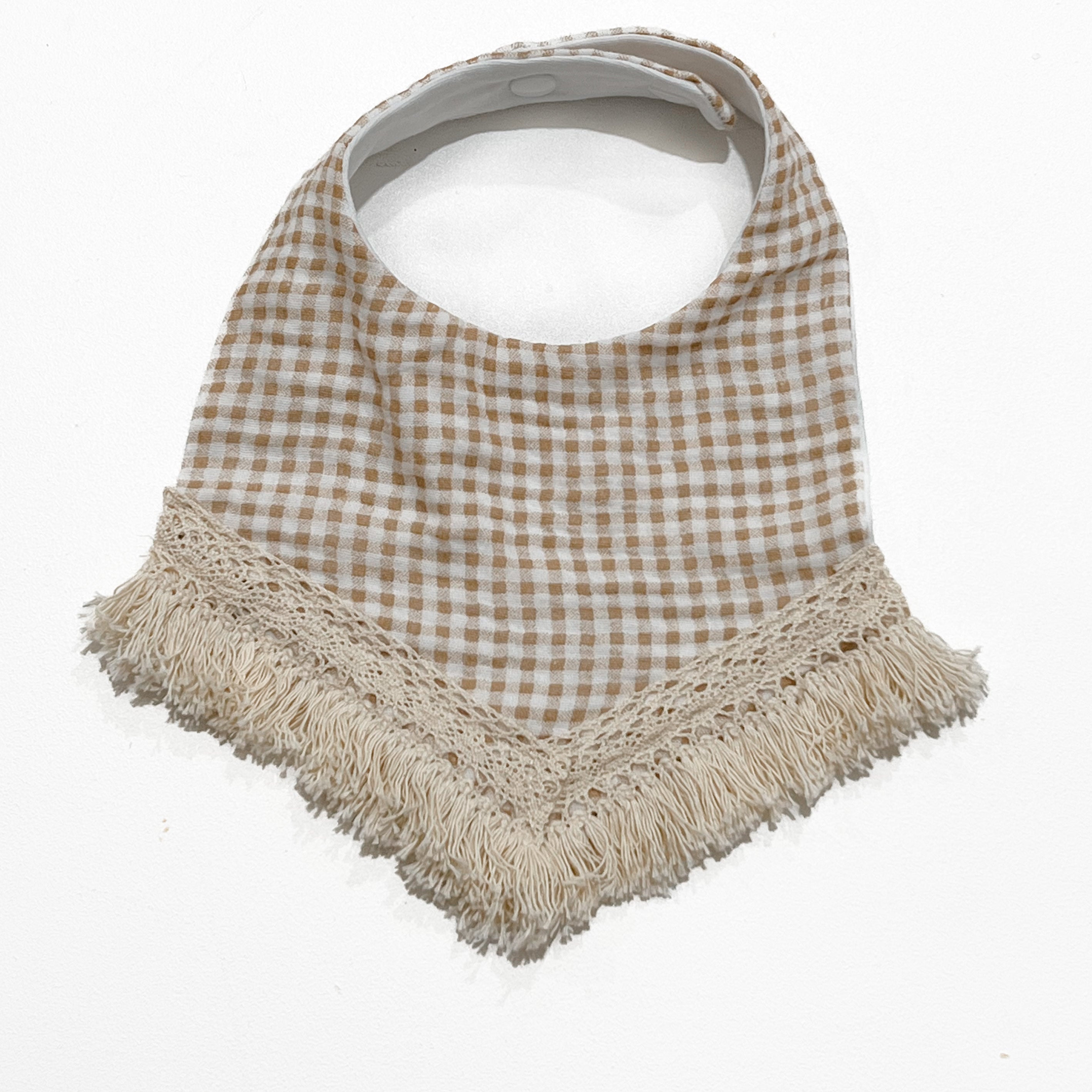 Our handmade Boho Bibs are made with stunning core Growbabyco fabrics, then lined with a light and absorbent cotton jersey lining. Each bib is trimmed with gorgeous cotton lace tassels and has 2 snap clips for easy sizing options.