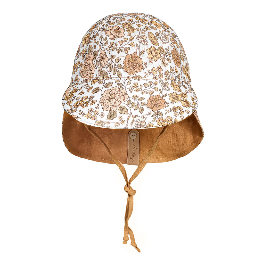 Bedhead Heritage Lounger Baby Flap Hats are light on heads, making them the ideal first hat for babies as they forget they're wearing them! The soft flap lies flat behind baby's neck while they're in a pram or baby carrier, and the brim is slightly upright letting them see the world. Made from 100% eco-friendly linen which can self-cool in summer and warm in winter, the Lounger hat provides UPF50+ sun protection without overheating little heads.