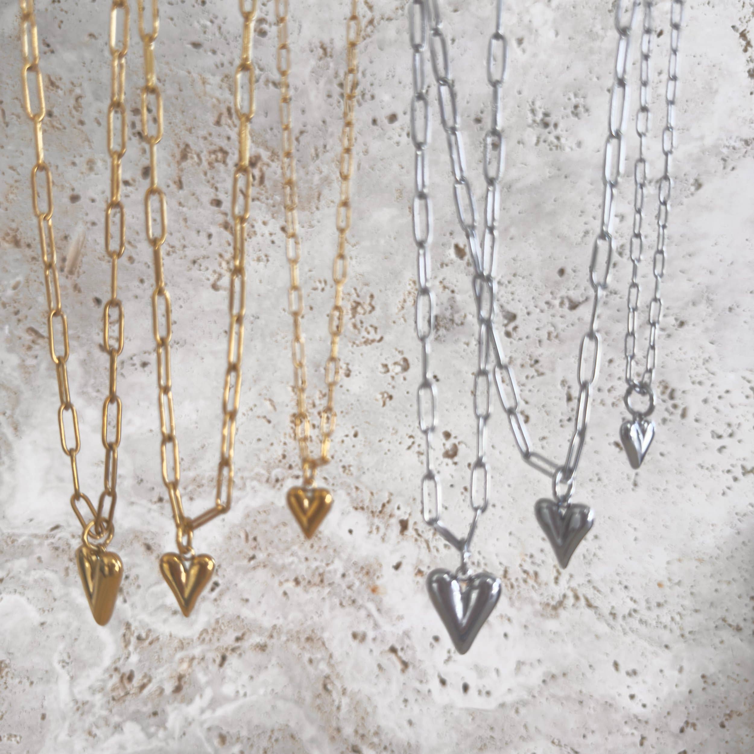 Self Love Necklace - Coastal Collection Layer all your favorites’s and finish it with this stainless heart charm chain necklace with this perfect solid heart pendant set on a slider. This self-love expression will see you through every season.