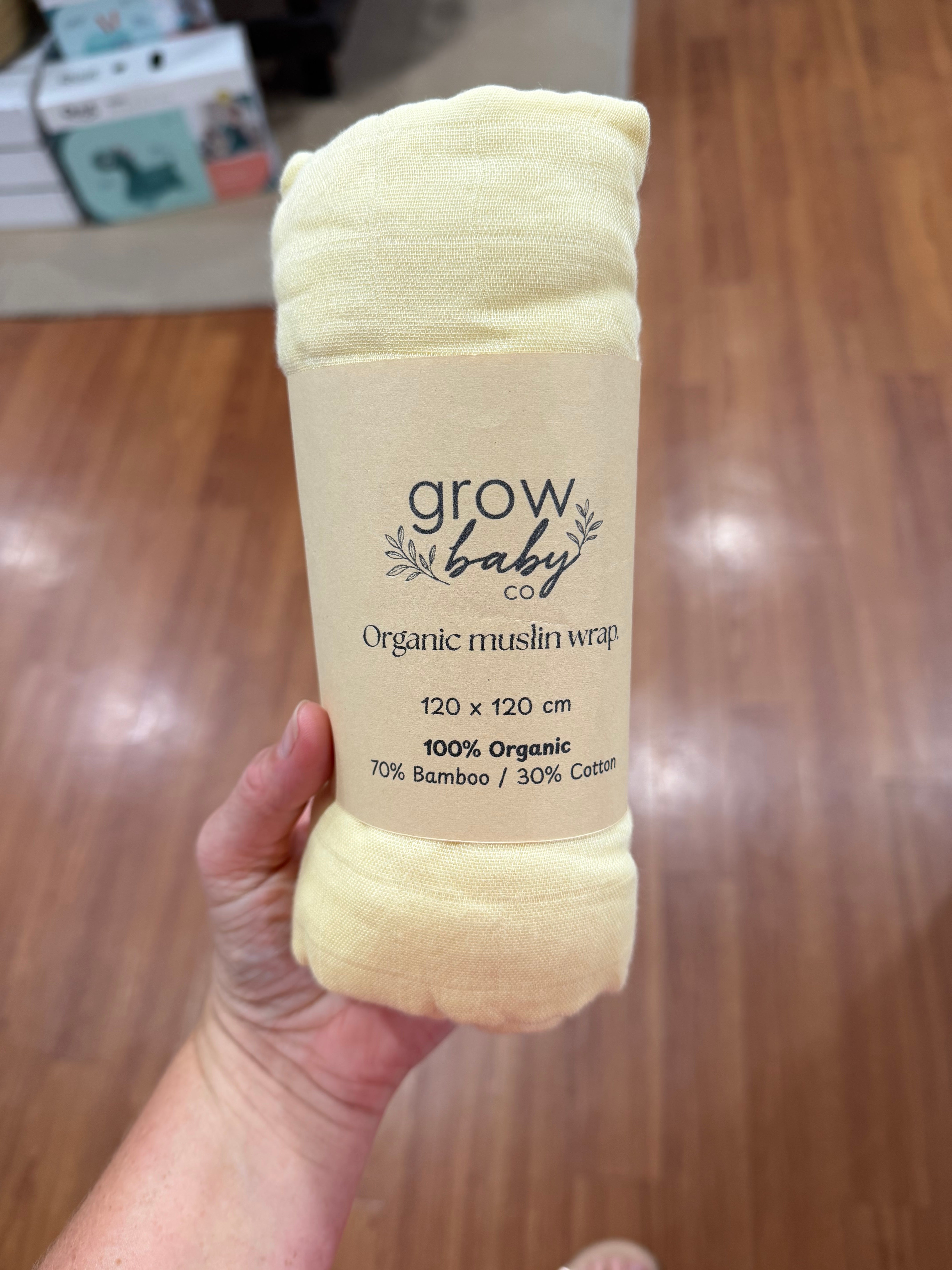 Keep sleep time cozy with our GOTS certified Organic Bamboo/Cotton muslin swaddle.