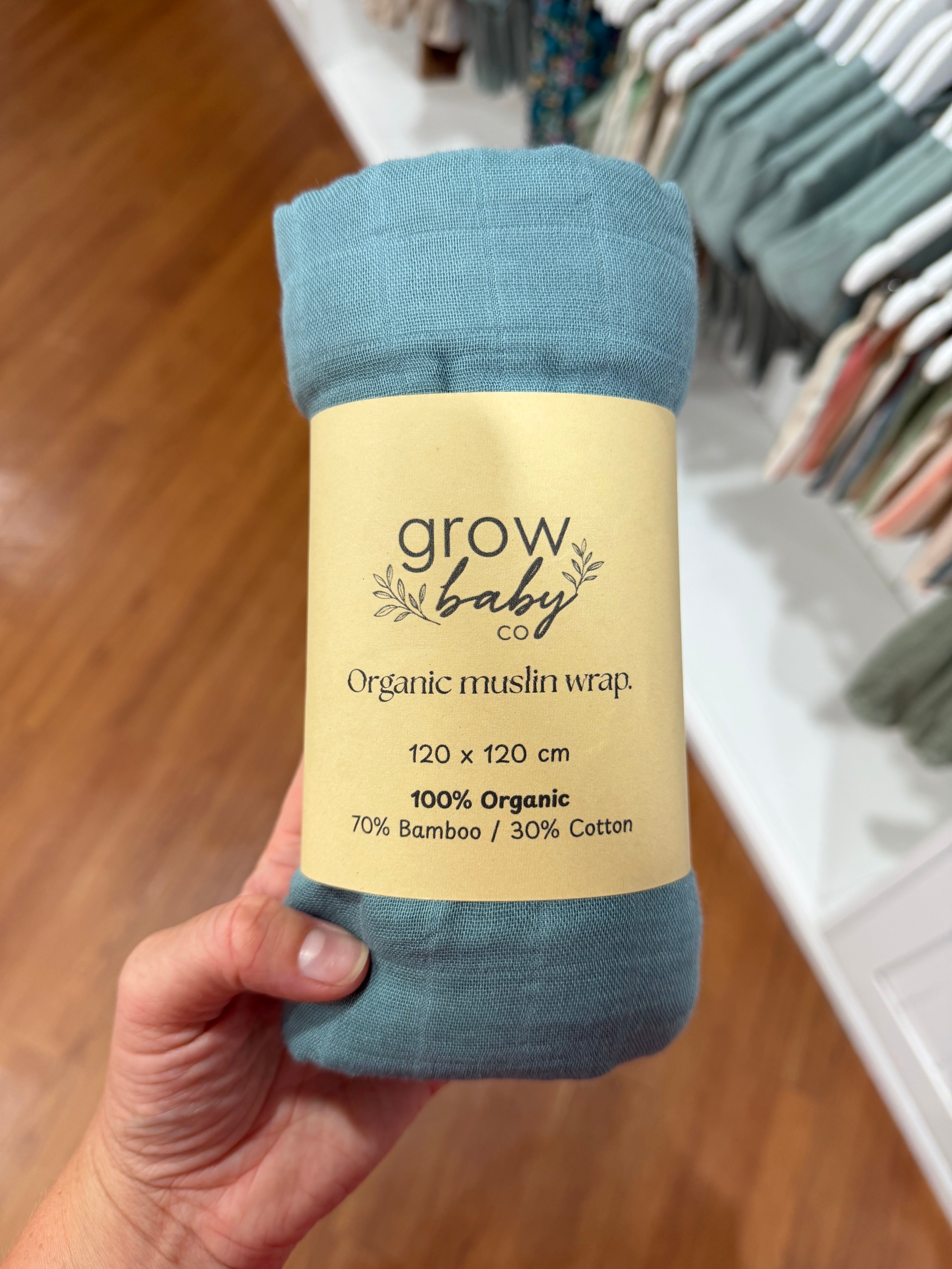 Keep sleep time cozy with our GOTS certified Organic Bamboo/Cotton muslin swaddle.