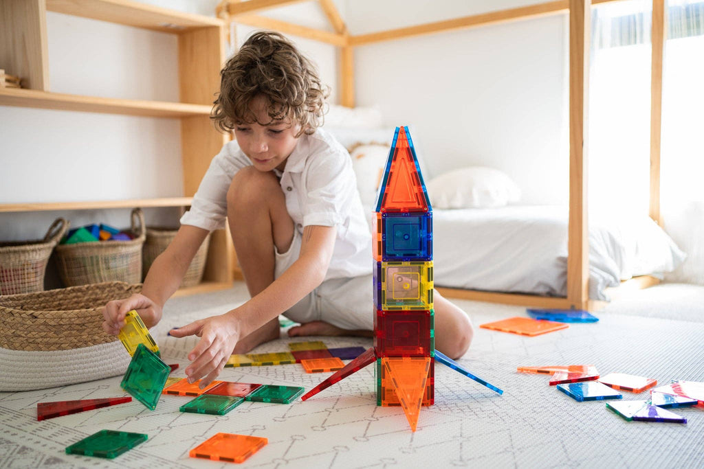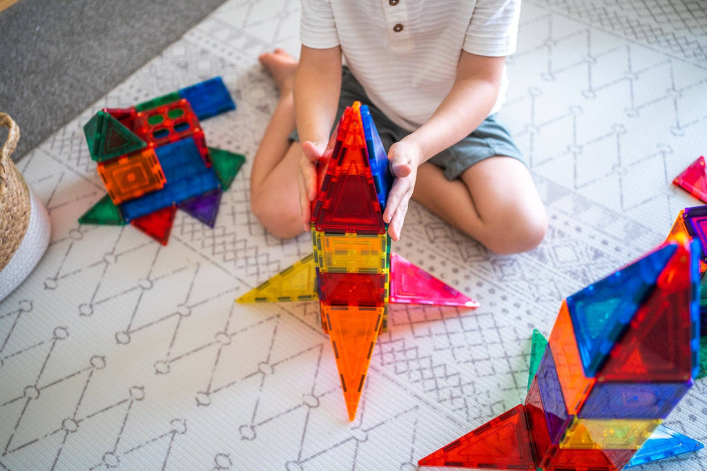 Magnetic tiles provide children with open-ended experiences where the only limitation is their imagination. Each tile has strong magnets to allow for tall buildings and structures that do not continually fall down and frustrate little builders.